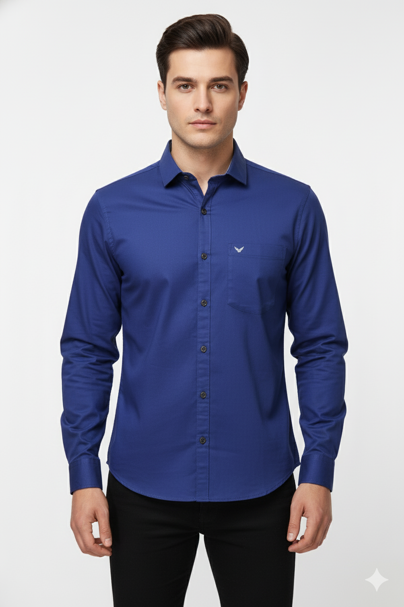 A sleek royal blue cotton shirt offering a perfect blend of sophistication and comfort — ideal for formal, semi-formal, and smart-casual occasions.