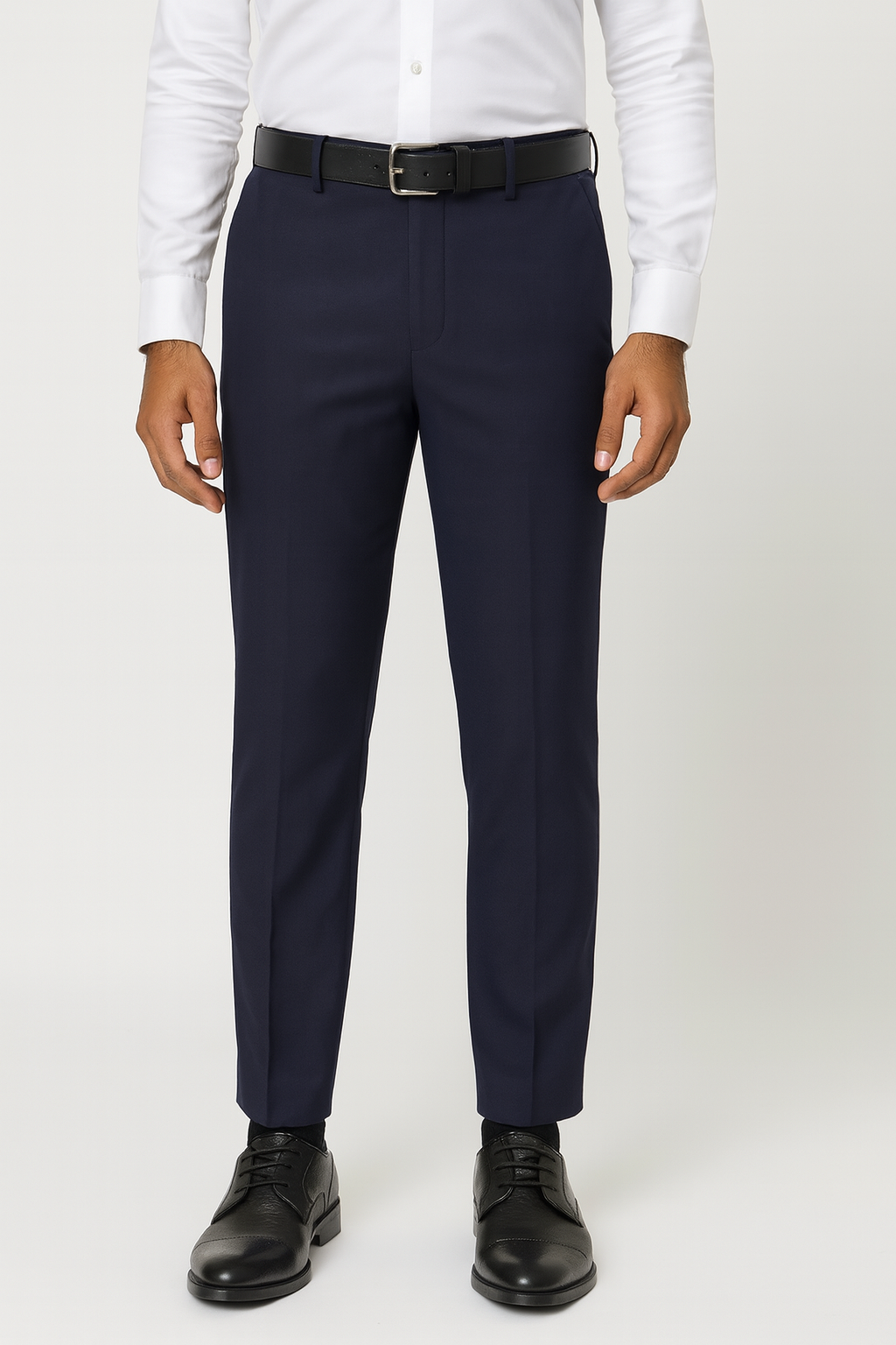 Sophisticated midnight blue slim-fit trousers designed to deliver a sharp, confident look for business meetings, formal events, or daily office wear.