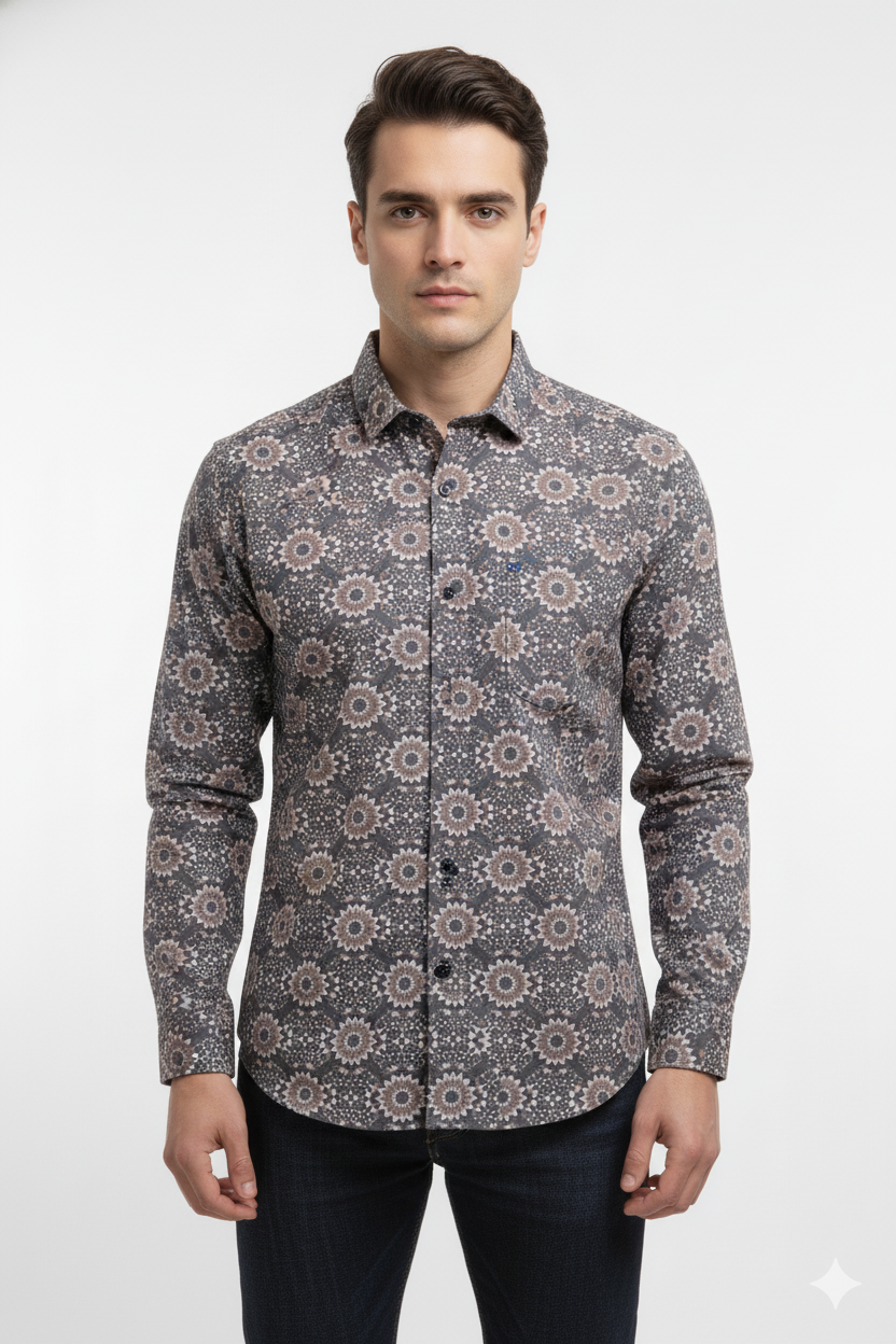 Men’s Slim Fit Printed Cotton Shirt – Floral Mosaic Pattern