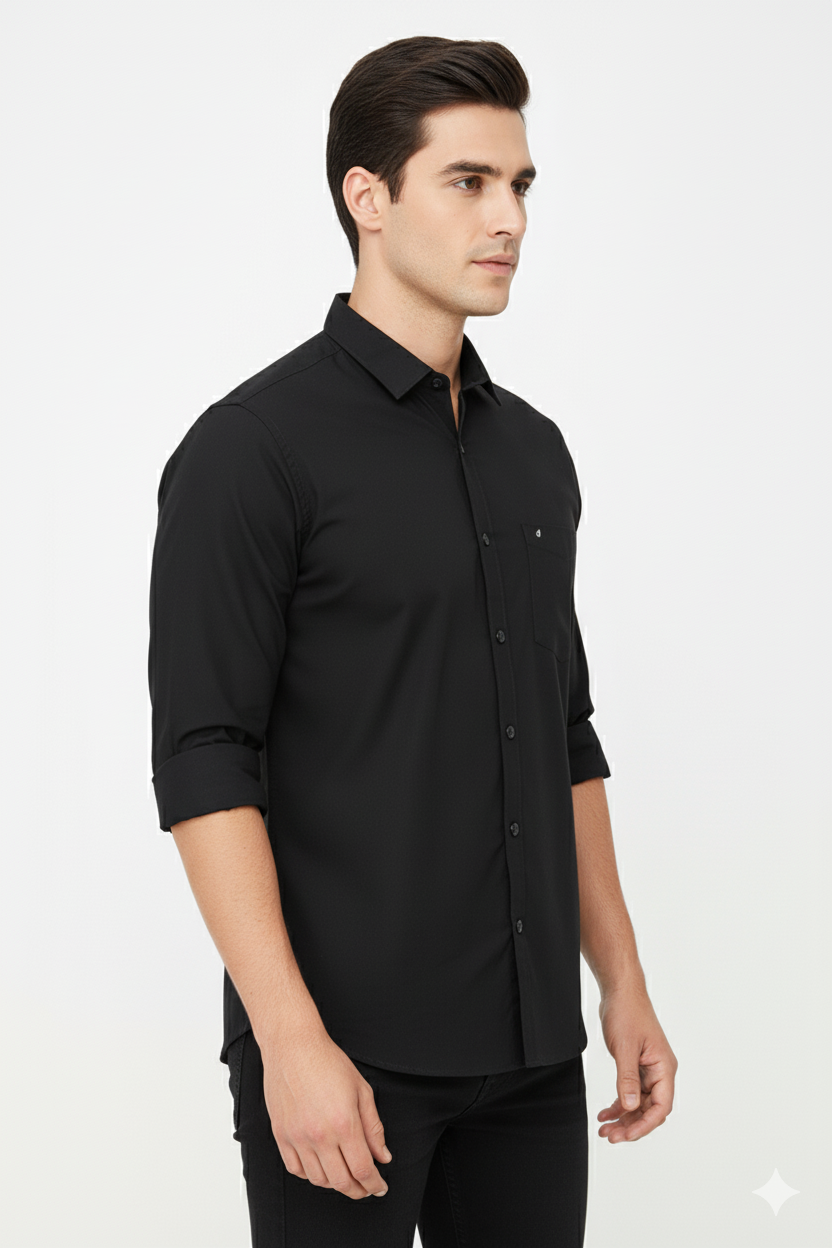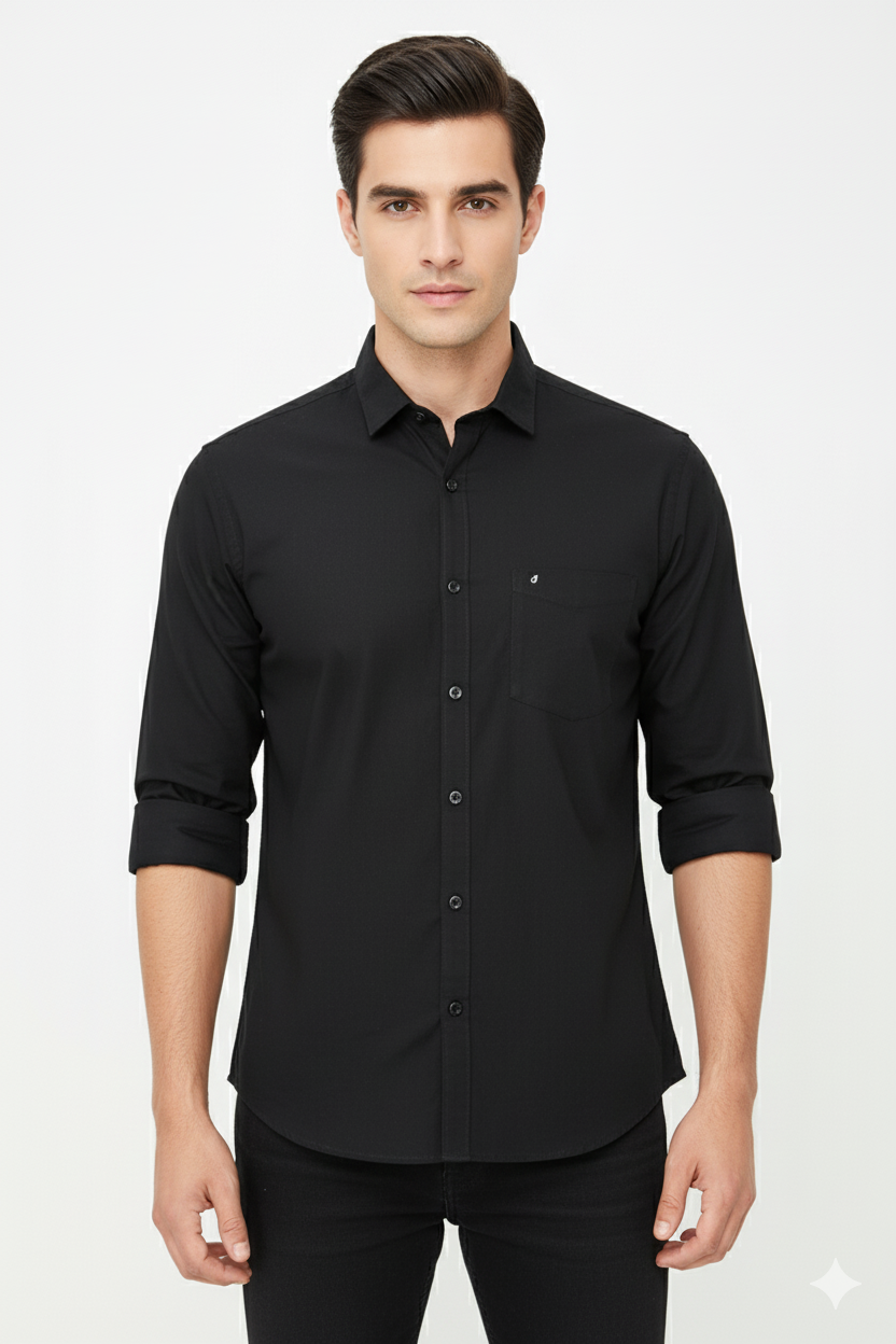 A sleek and versatile black cotton shirt that defines timeless style. Ideal for formal, semi-formal, and casual occasions alike.