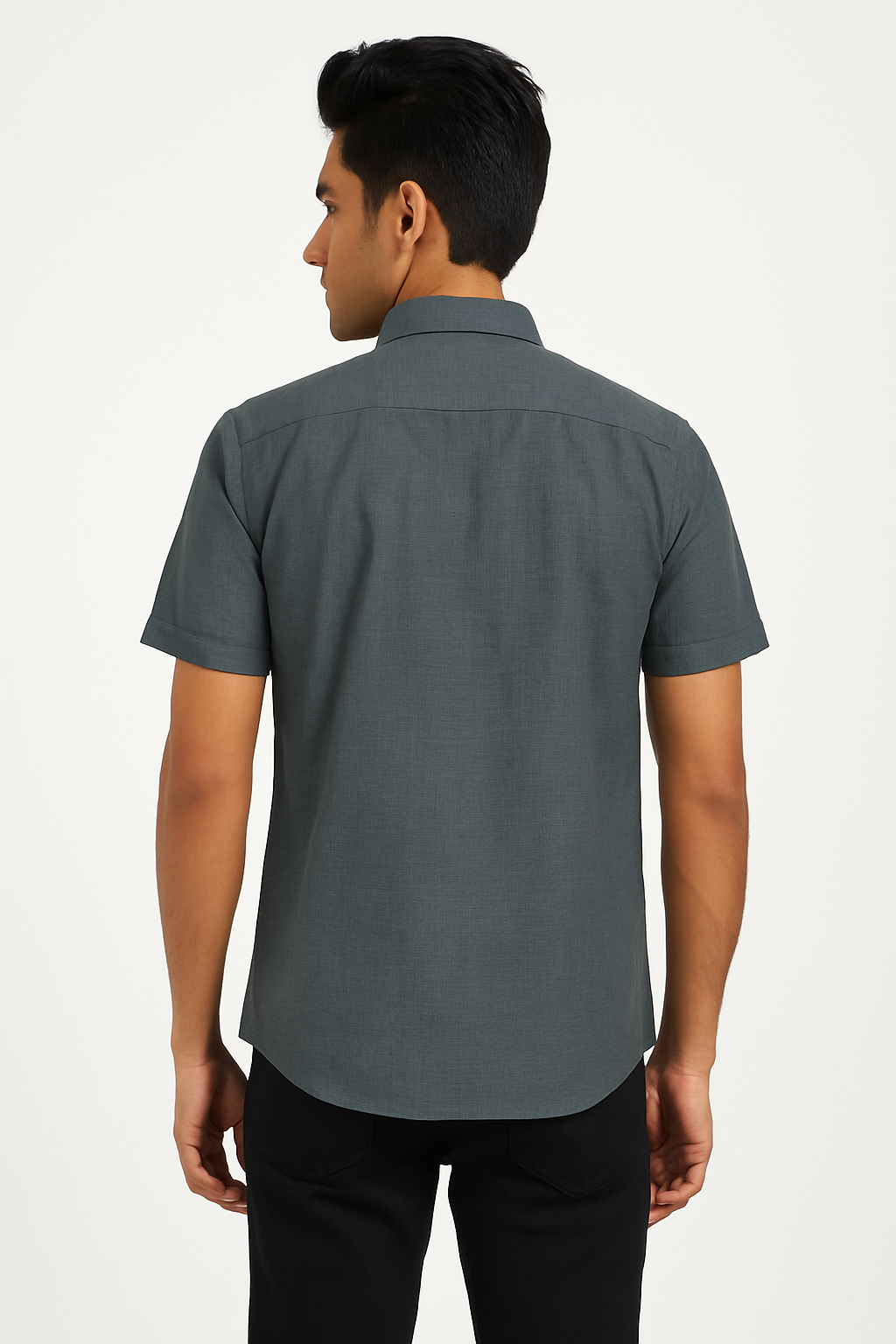 Step into understated style with this solid charcoal grey short sleeve shirt. Crafted from breathable and soft fabric, it ensures comfort without compromising on style. The button-down front, structured spread collar, and functional chest pocket add subtle yet refined detailing. The deep charcoal hue makes it an easy-to-style wardrobe essential, perfect for pairing with jeans, chinos, or tailored trousers. Whether for casual Fridays at work, evening outings, or weekend wear, this shirt delivers a modern and polished look.