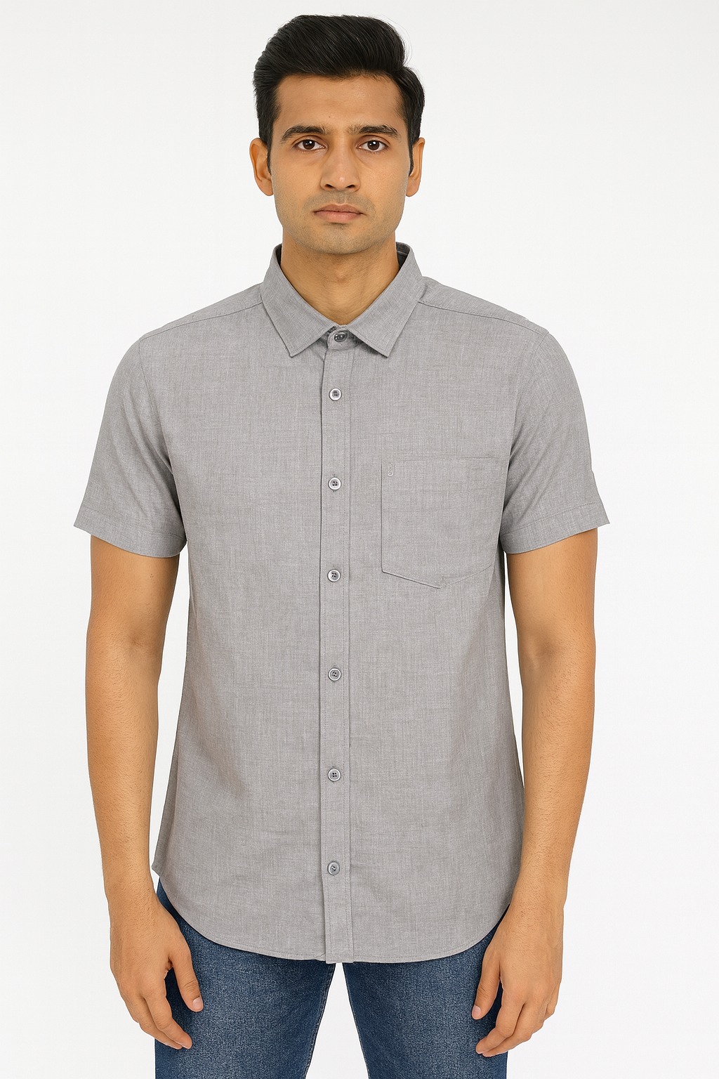 A versatile solid grey shirt with short sleeves, tailored for a polished yet casual everyday look.
