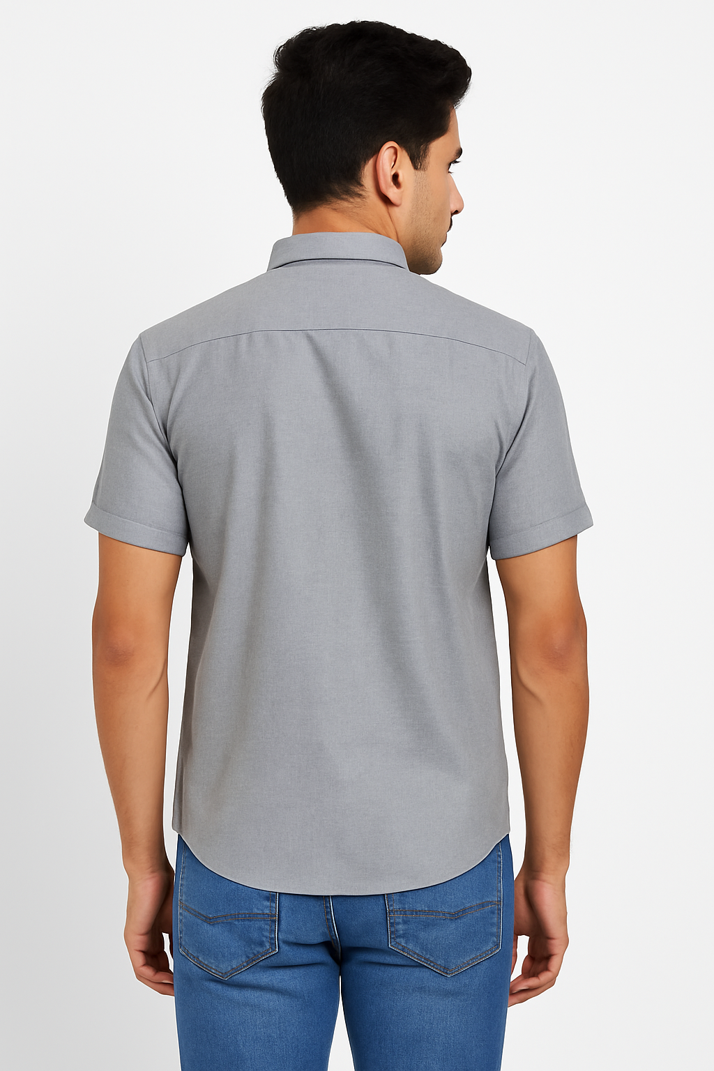 Elevate your wardrobe with this solid grey short sleeve shirt, a timeless piece that effortlessly combines simplicity and elegance. Crafted with premium breathable fabric, it ensures maximum comfort throughout the day while maintaining a crisp, structured appearance. Featuring a button-down front, classic spread collar, and a functional chest pocket, this shirt is designed to suit both casual outings and semi-formal occasions. Pair it with jeans for a relaxed weekend vibe or chinos for a refined smart-casual look. A must-have essential that complements any wardrobe with understated sophistication.
