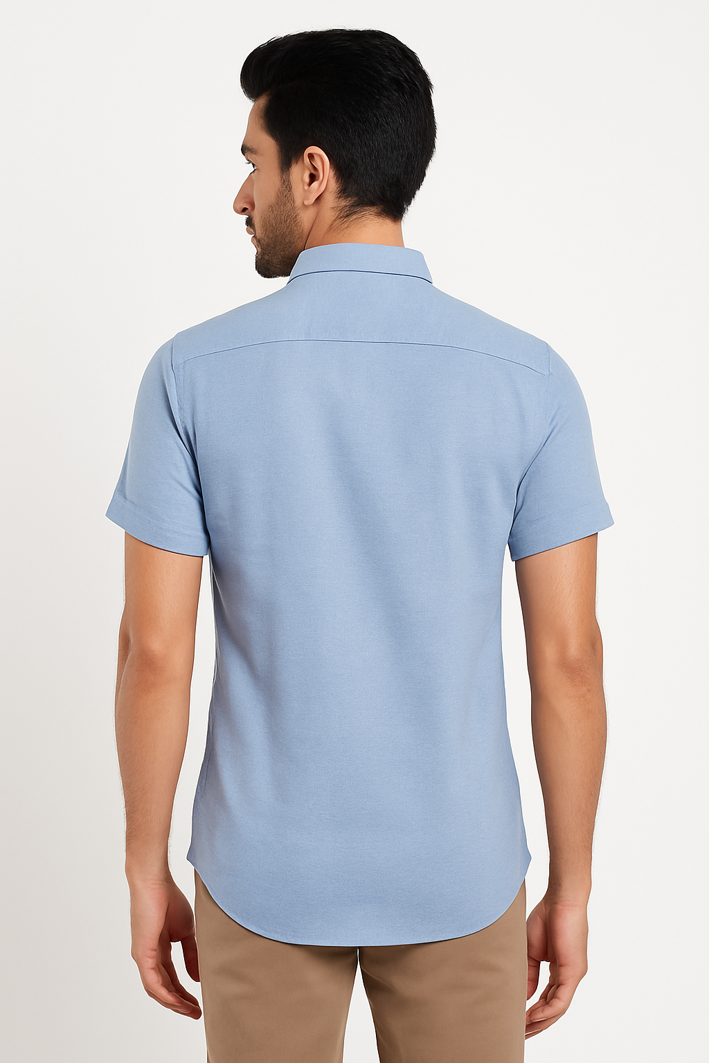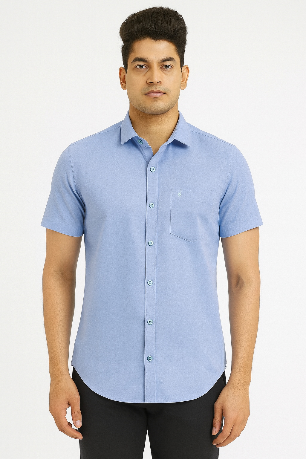 A classic solid light blue shirt designed for comfort and versatility — ideal for work or weekend wear.