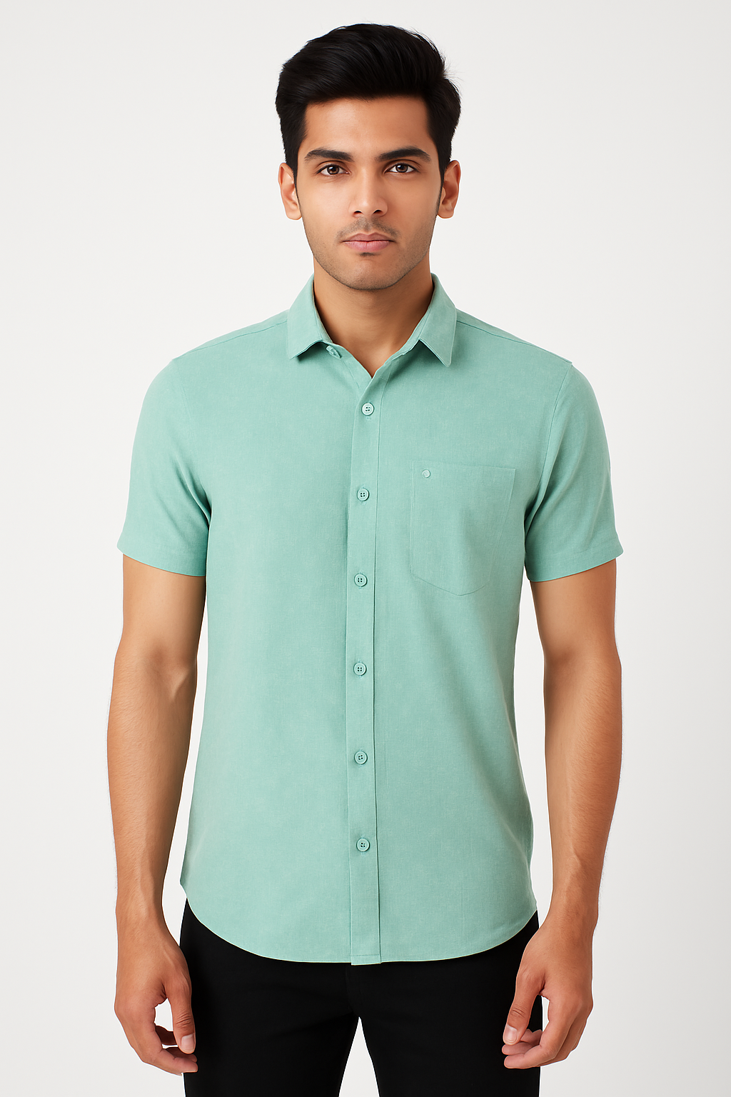 A refreshing solid mint green shirt — perfect for a clean, contemporary casual or semi-formal style.