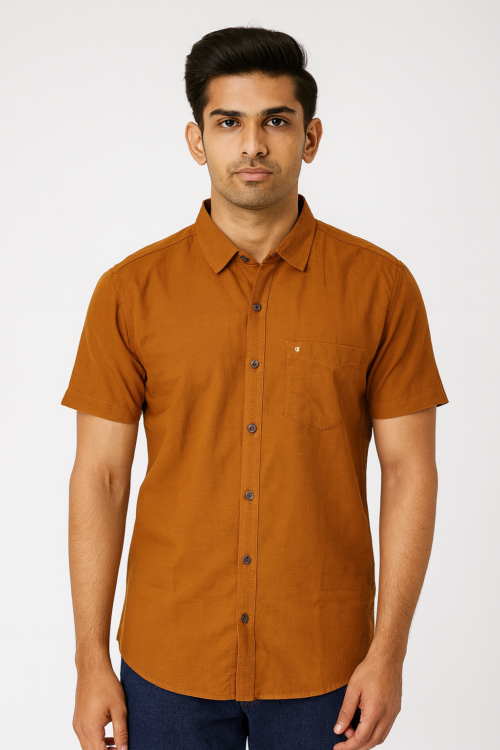 Men’s Solid Rust Brown Short Sleeve Shirt