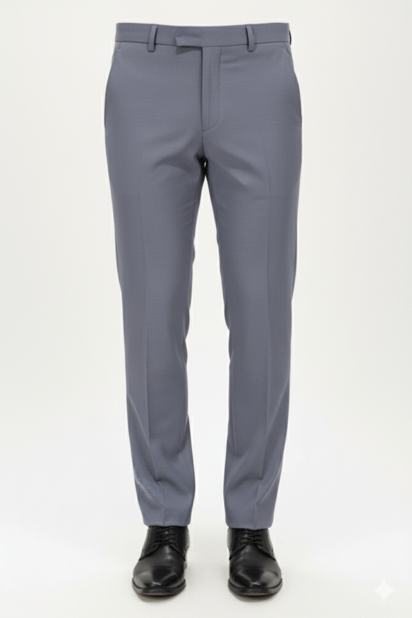 Refined steel grey slim-fit trousers crafted for all-day comfort and polished sophistication — a modern essential for formal occasions and business wear.