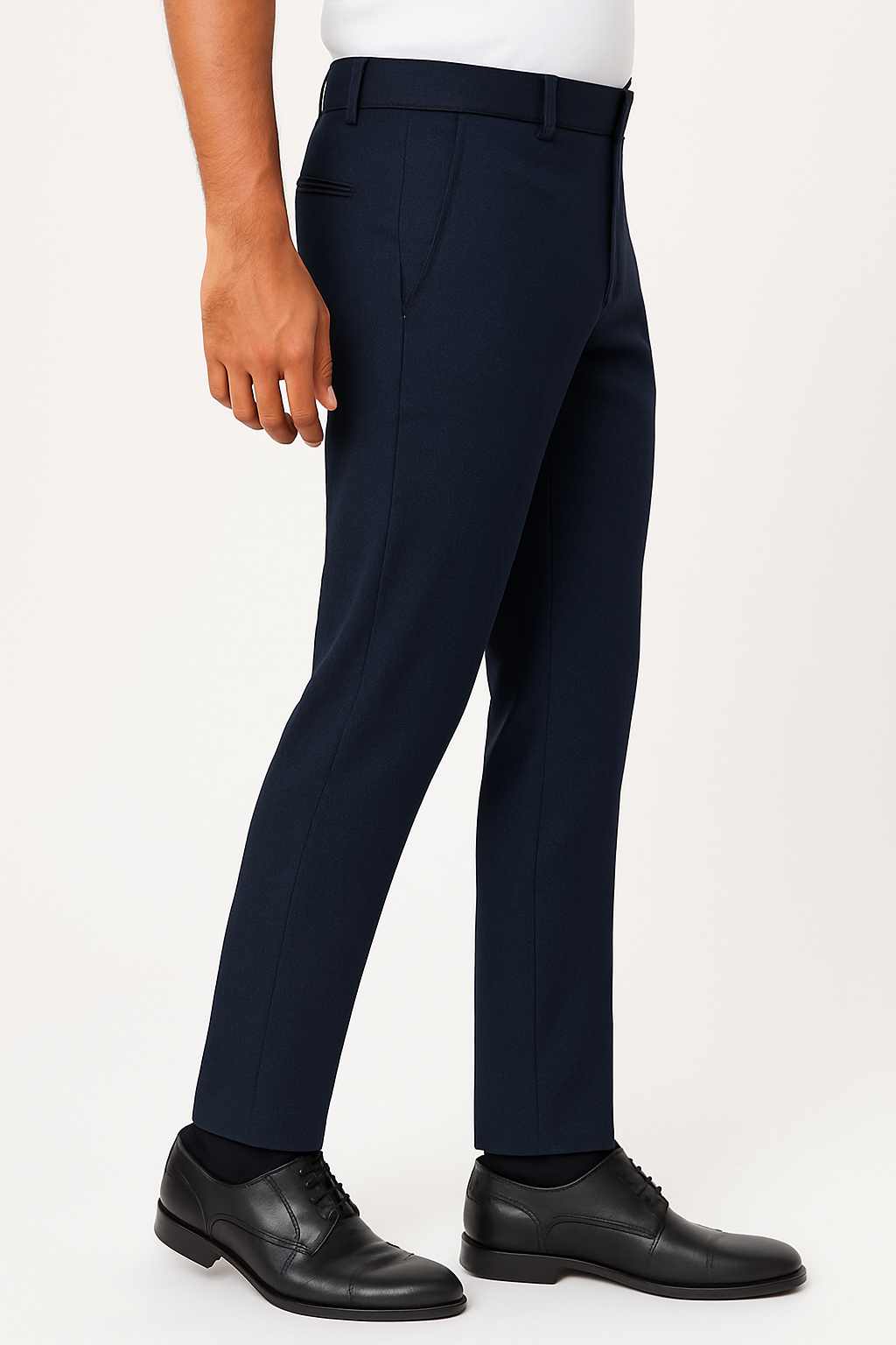 Sophisticated midnight blue slim-fit trousers designed to deliver a sharp, confident look for business meetings, formal events, or daily office wear.