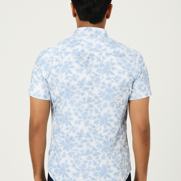 A refreshing white and blue floral shirt — perfect for breezy summer days and casual sophistication.