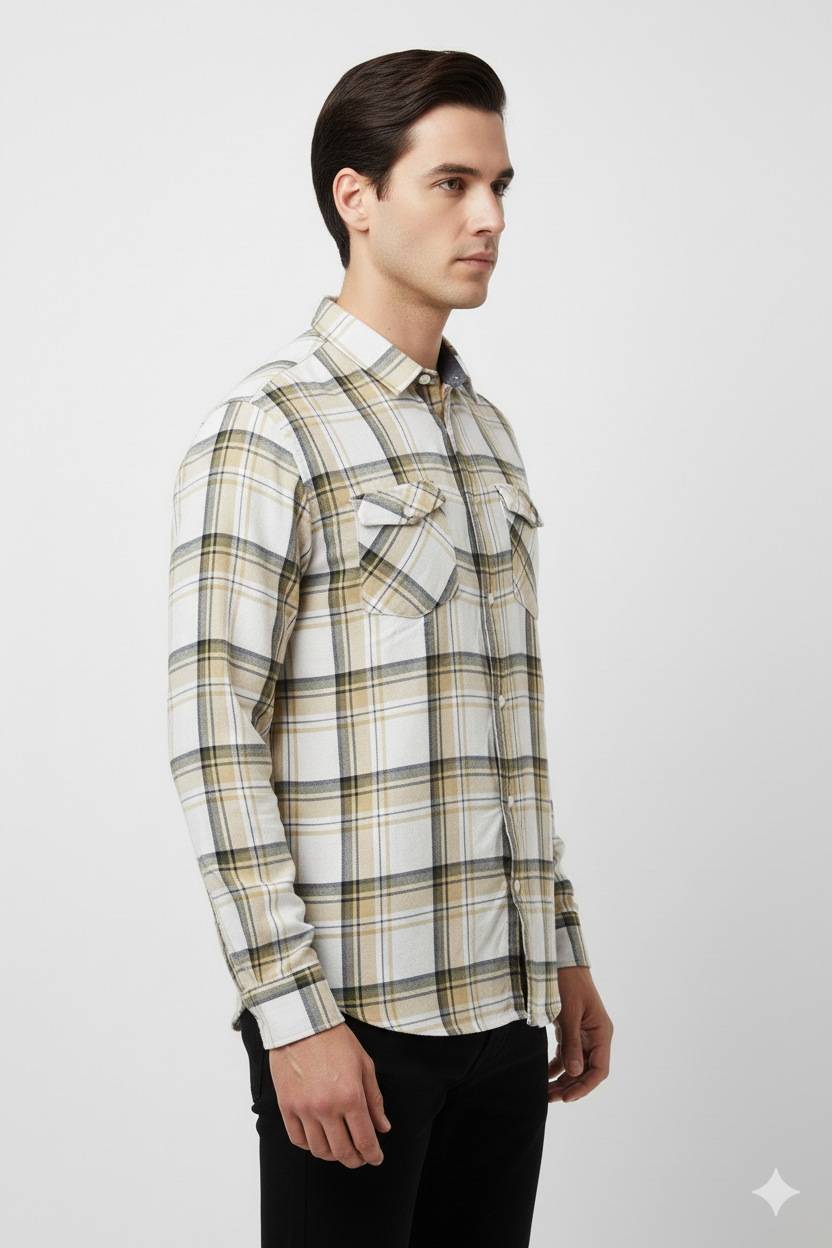 Add a touch of classic charm to your casual collection with this Men’s White & Beige Checked Cotton Shirt. Designed with a bold plaid pattern in beige, white, and subtle grey tones, it combines rustic appeal with contemporary design. Made from premium brushed cotton, this shirt offers a soft feel and comfortable fit, ideal for all-day wear.