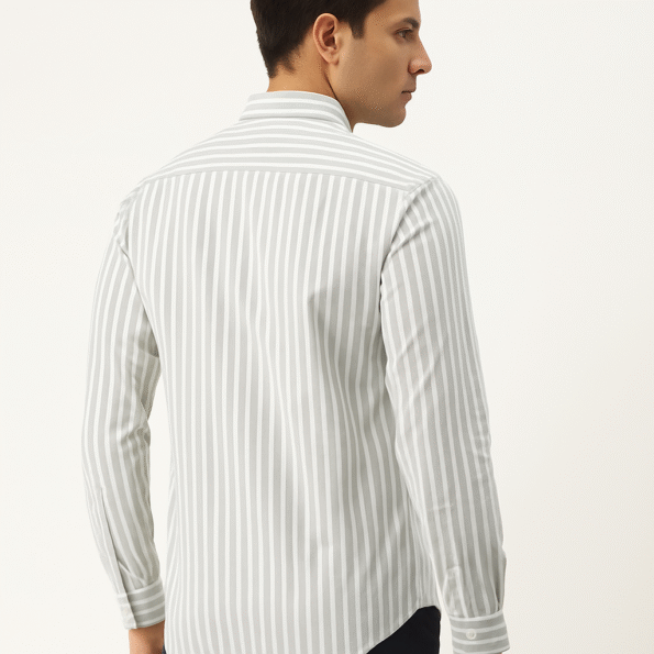 White cotton shirt with grey vertical stripes – sleek, versatile, and comfortable.