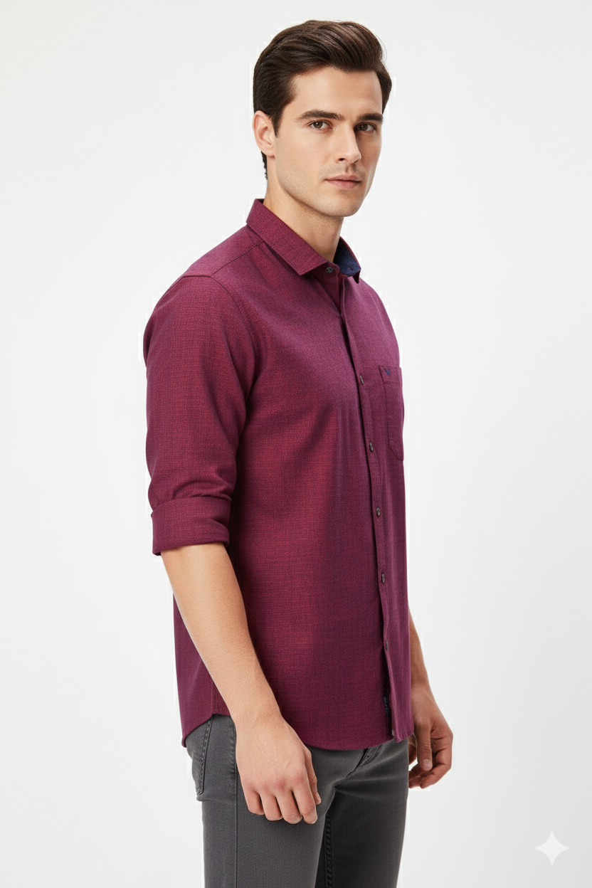 Sophisticated wine red textured shirt made from soft cotton fabric, perfect for casual and semi-formal occasions.