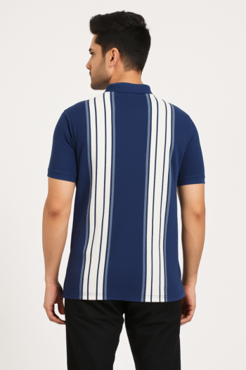 Men’s Navy Vertical‑Stripe Polo T‑Shirt – Retro Sport, Regular Fit